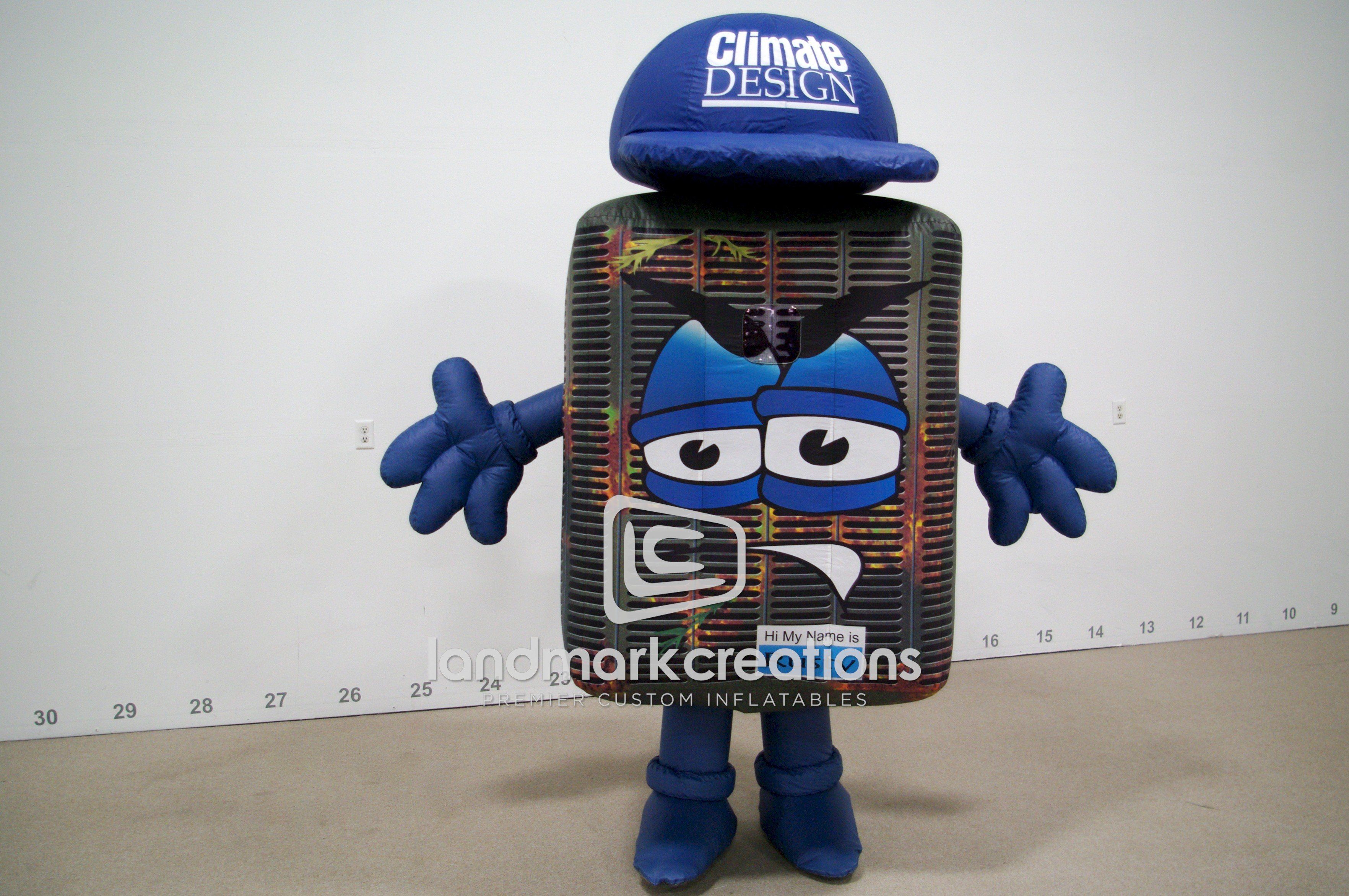 Climate Design Air Conditioning & Heating uses Rusty, the inflatable air conditioner mascot costume, to reinforce their ‘stop blowing money’ message at events.