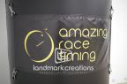 Amazing Race Timing, a professional event timing and planning service, uses this giant, yellow and black archway as a visually attractive start / finish line.