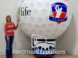 This inflatable golf ball was designed for the American Century Championship at Edgewood Tahoe Golf Course. Those who attended the event signed the giant golf ball in support of Korbel's Responsibility Challenge.