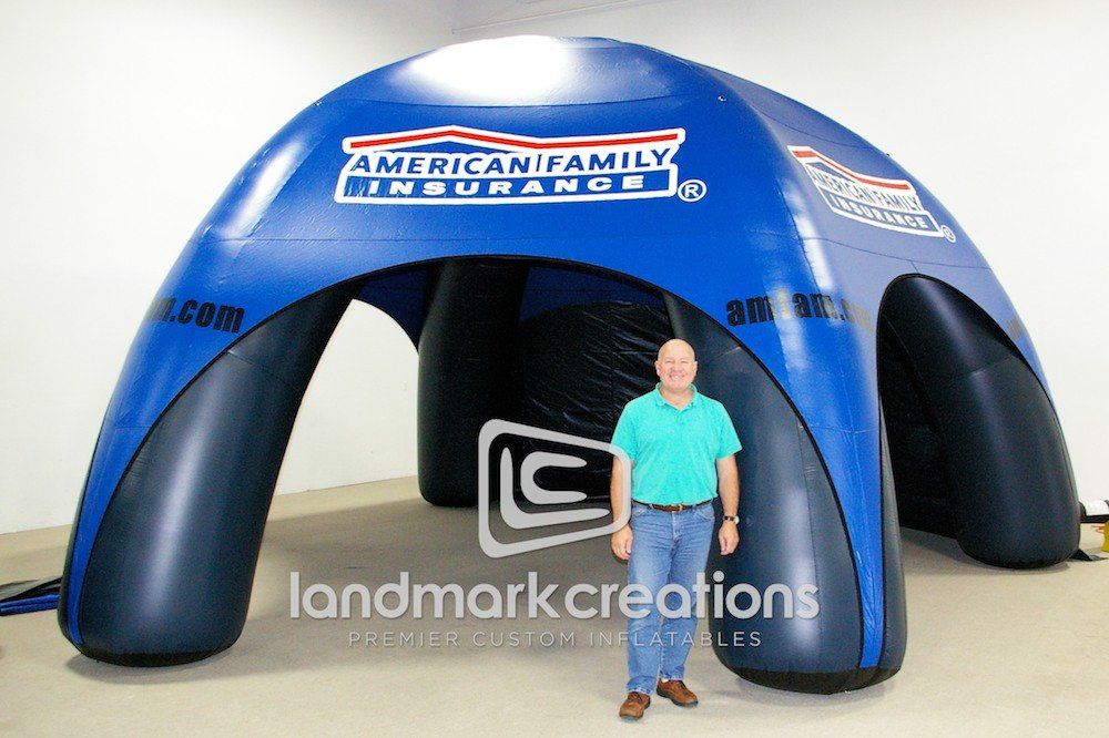 Increase brand recognition with a custom-designed inflatable tent at marketing events like this American Family Insurance AirTent.