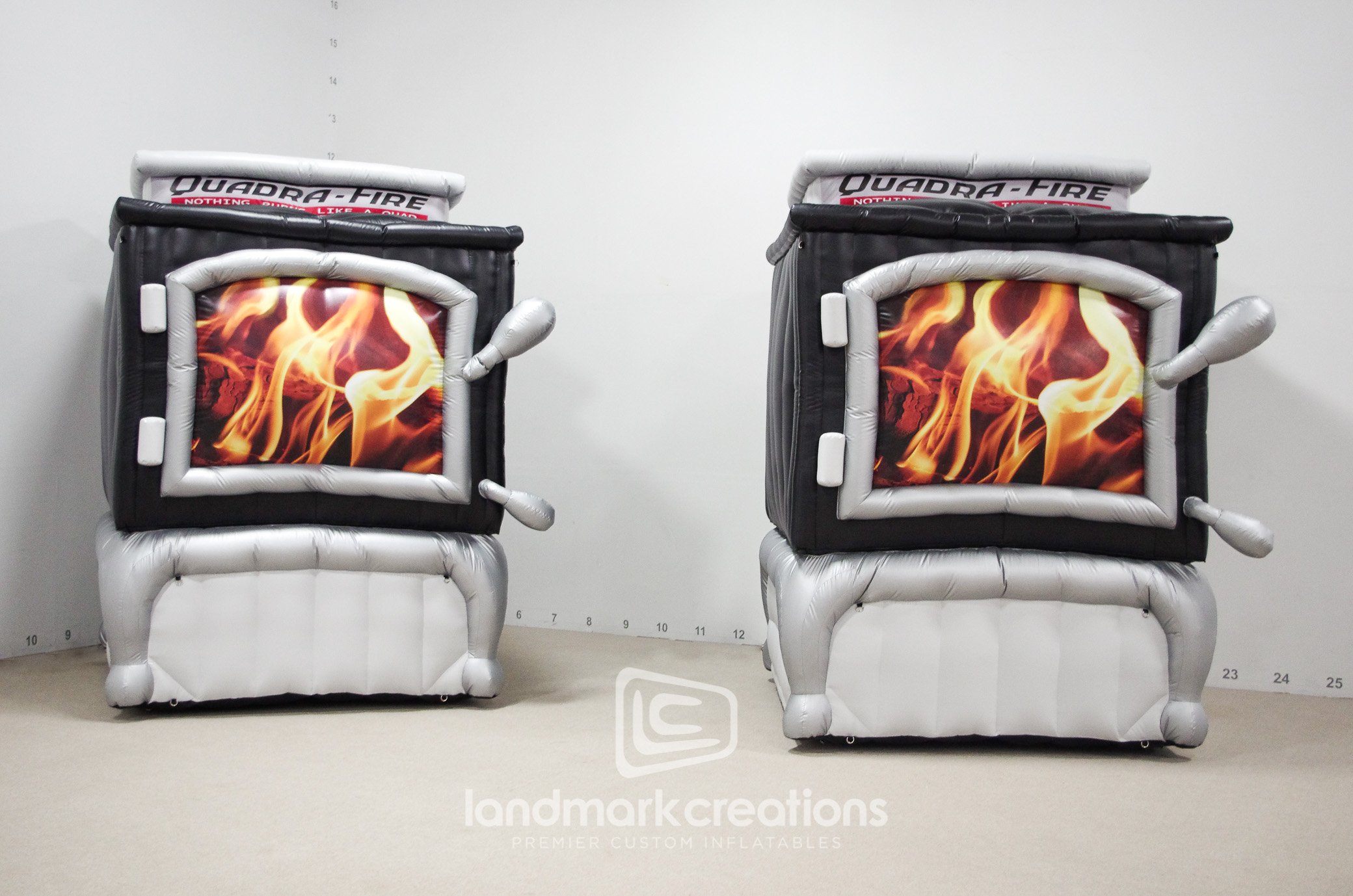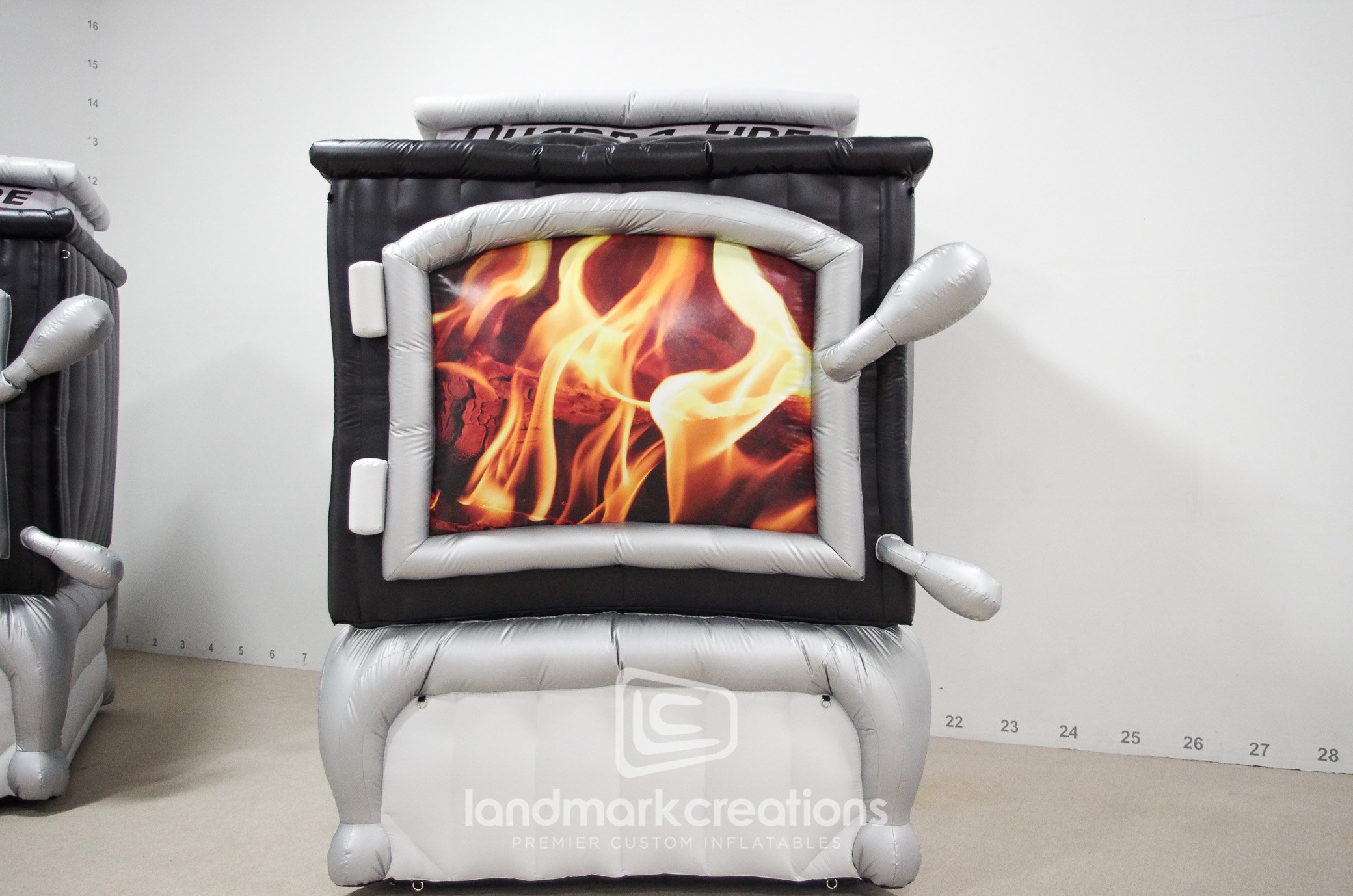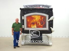This oversized fireplace may not provide real heat, but it sure warmed things up for Aqua Rec Fireside Hearth & Home’s business. The highly detailed, custom designed inflatable fireplace was visually stirring and drew people to the retail store.