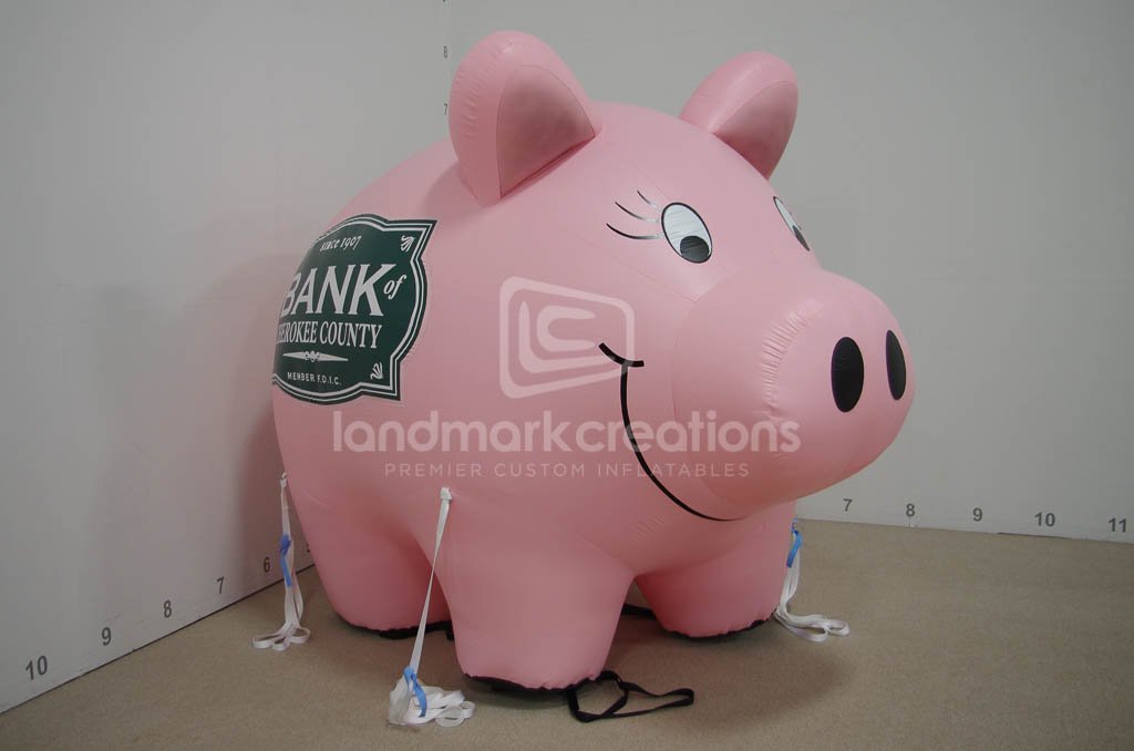 Trying to find a fun way to promote your bank? How about using a cute inflatable piggy bank with your logo on both sides. Customers love to take pictures with these inflatable mascots!