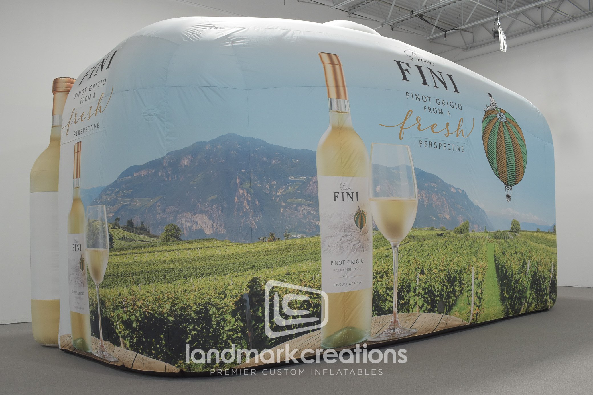 Inspira Marketing incorporated this inflatable kiosk into Barone Fini wine's #FlightOfFini activation at hot air balloon festivals where attendees can take a virtual reality balloon ride.