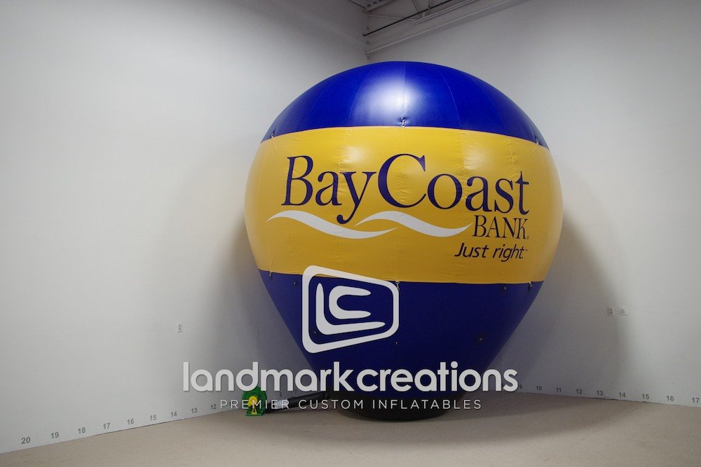 BayCoast Bank placed this custom hot air shape on its rooftop to announce the grand opening of a new branch. The inflatable hot air balloon shape displays the bank logo, which is familiar to communities in southeastern Massachusetts and Rhode Island.