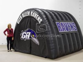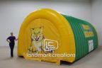 Moody High School uses their inflatable sports tunnel, a traditional tunnel with their school mascot printed on the break away doors, to excite fans at football games.