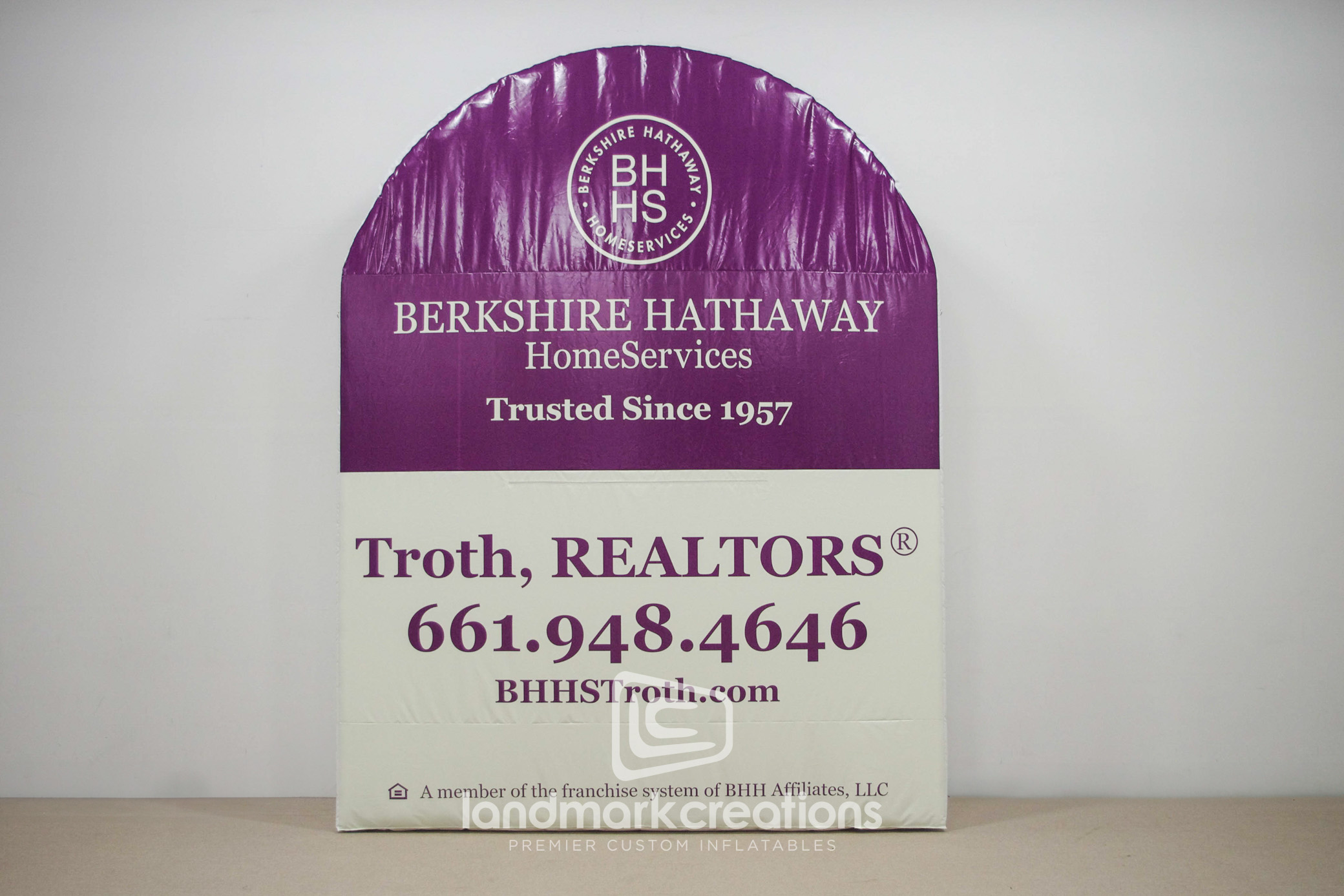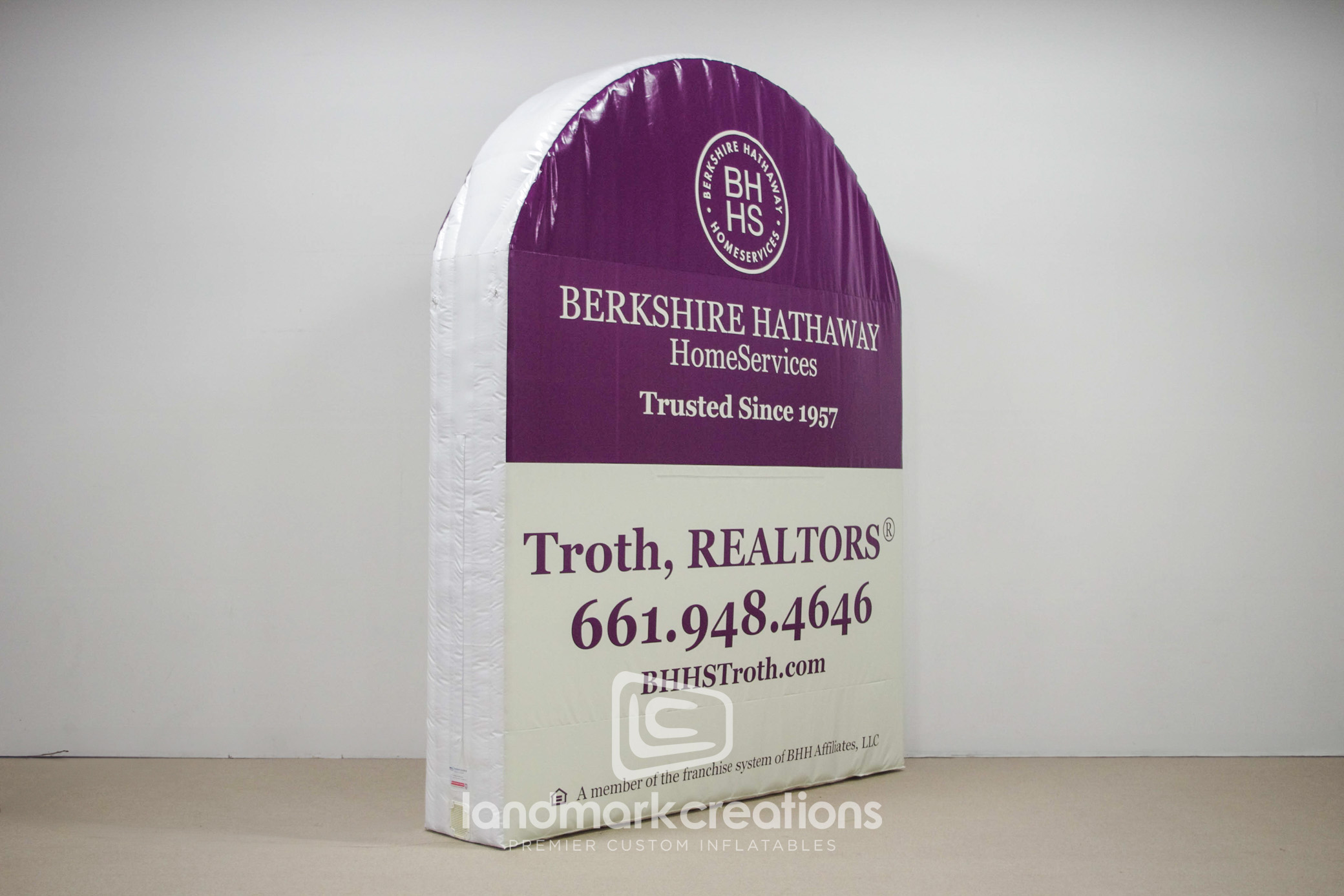 The Berkshire Hathaway Sign inflatable is a large, attention-grabbing replica of the company’s logo, perfect for corporate events and shareholder meetings. This custom inflatable enhances brand recognition and communicates professionalism.