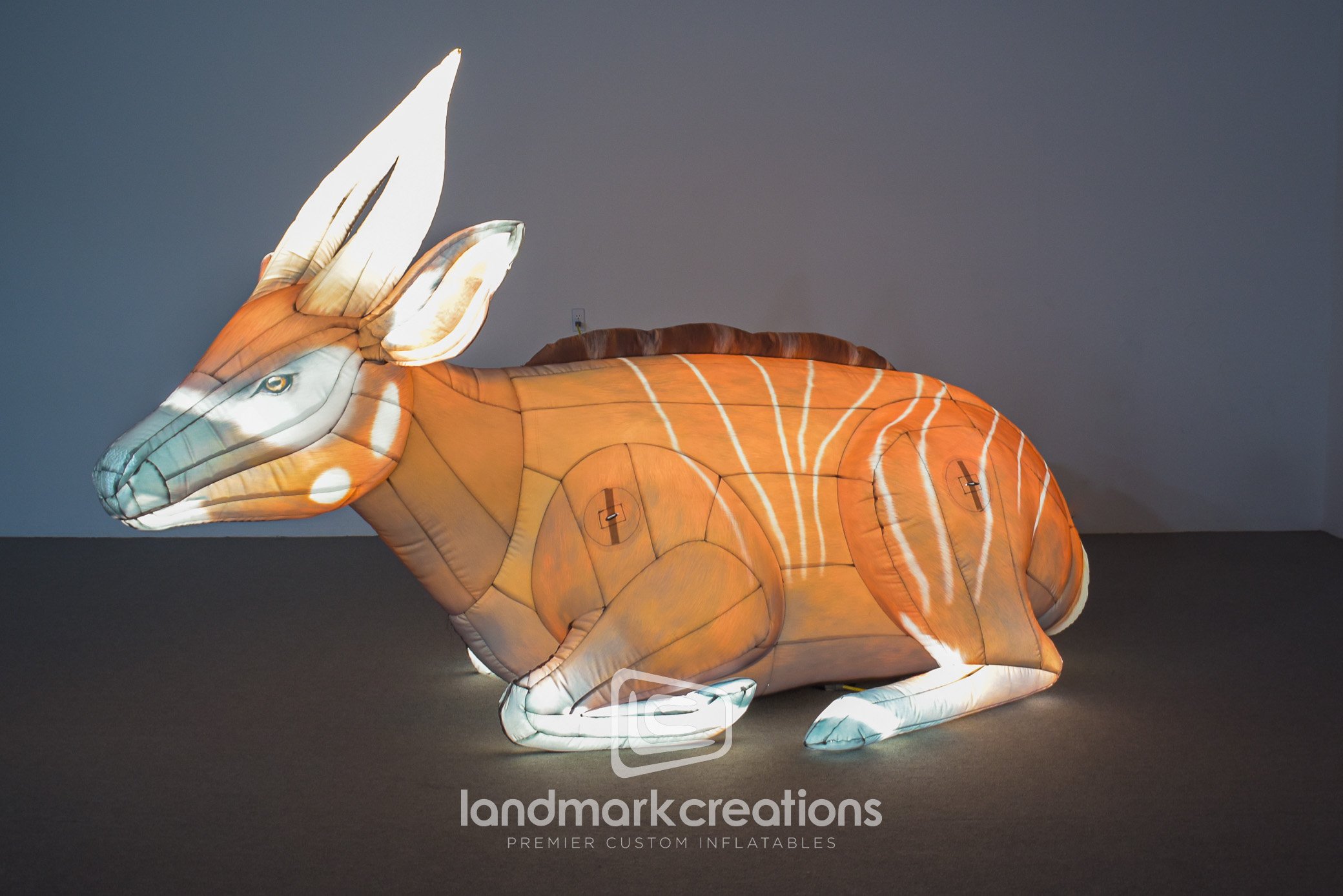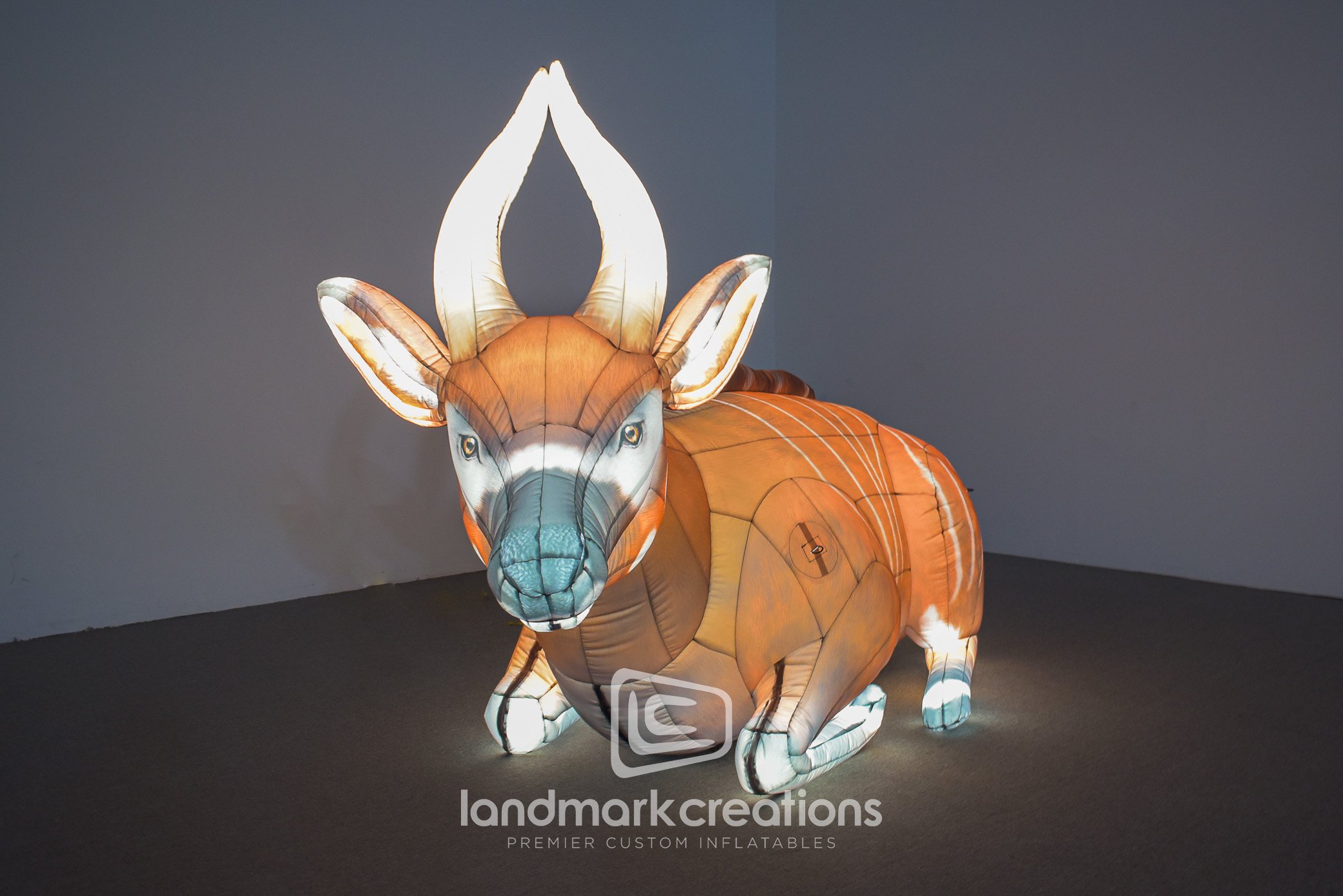 Who could resist the sweet eyes for the Virginia Zoo's inflatable bongo replica? The custom bongo display is featured in a set of two-dozen endangered species on display for the zoo's "Zoolumination" outdoor event.