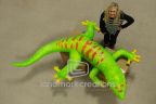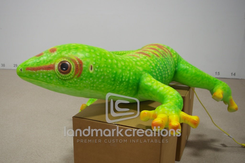 Bostik, Inc. inflates their mascot and hangs him at various trade shows around the world! The adhesive specialist in industrial manufacturing attracts attention with this bright colored lizard 'hanging out' at their trade show booth.