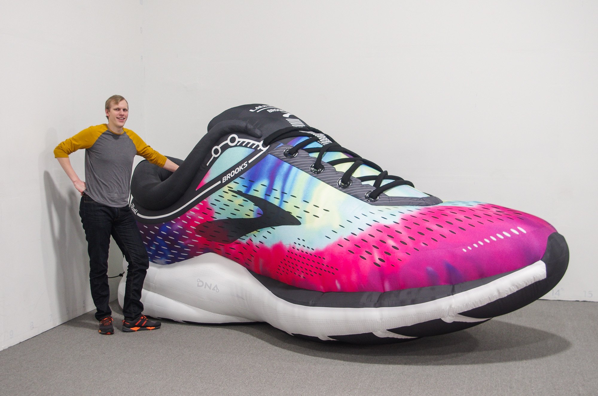 Brooks Running, a presenting sponsor of the Rock ‘n’ Roll Marathon Series, brings one of their famous running shoes to an astonishing scale with this six-foot-tall, fourteen-foot-long inflatable replica. With 25 races across the globe, the inflatable’s packability and portability are two of its greatest assets!