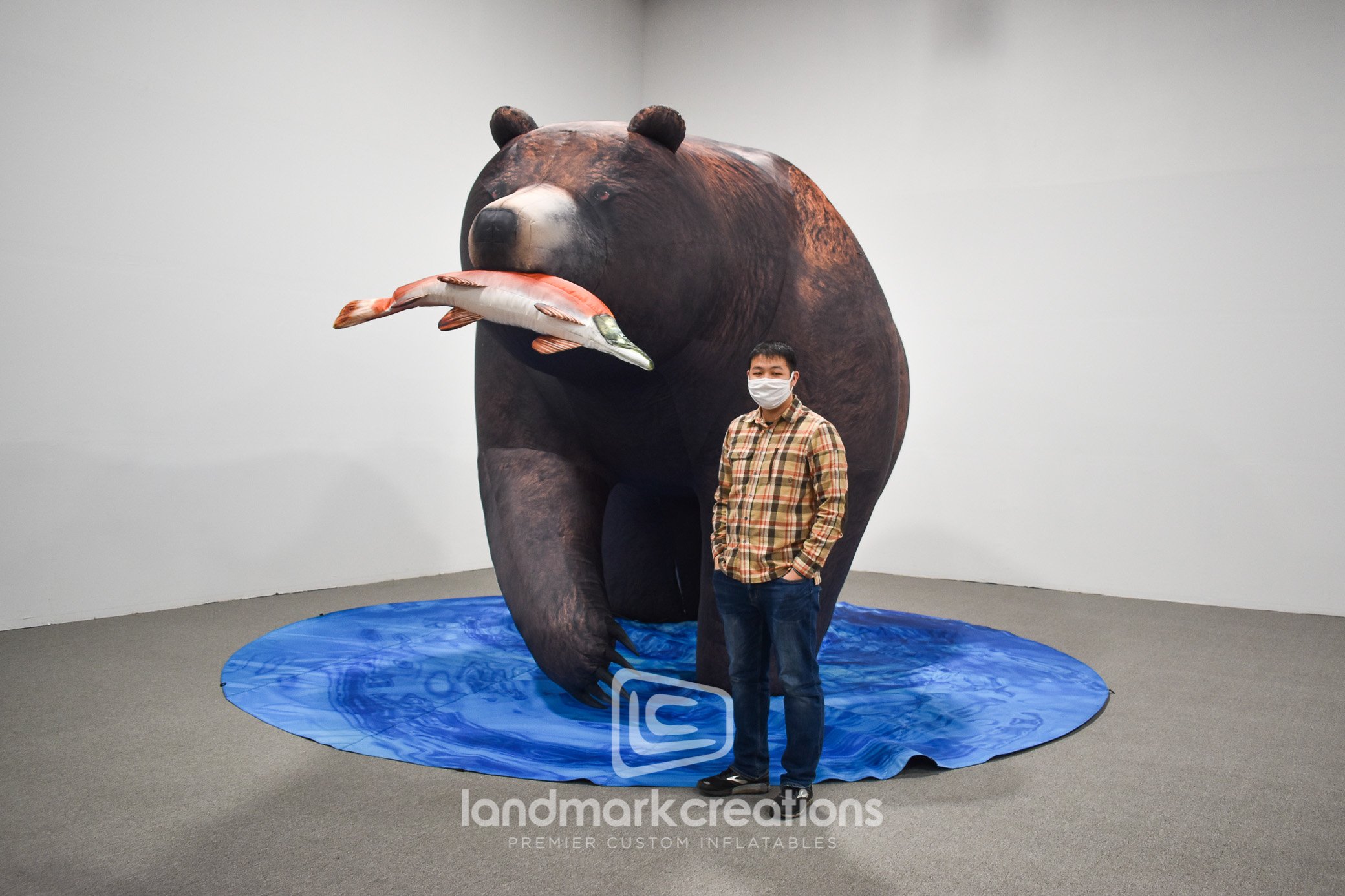 Striding across a pool of water while toting a salmon, this giant brown bear display charms guests at the Minnesota Zoo's outdoor exhibit, "Nature Illuminated". Inflatable wildlife displays can be created with detailed textures and internal light systems, making them proven performers for events that require a high degree of realism during the day or at night.
