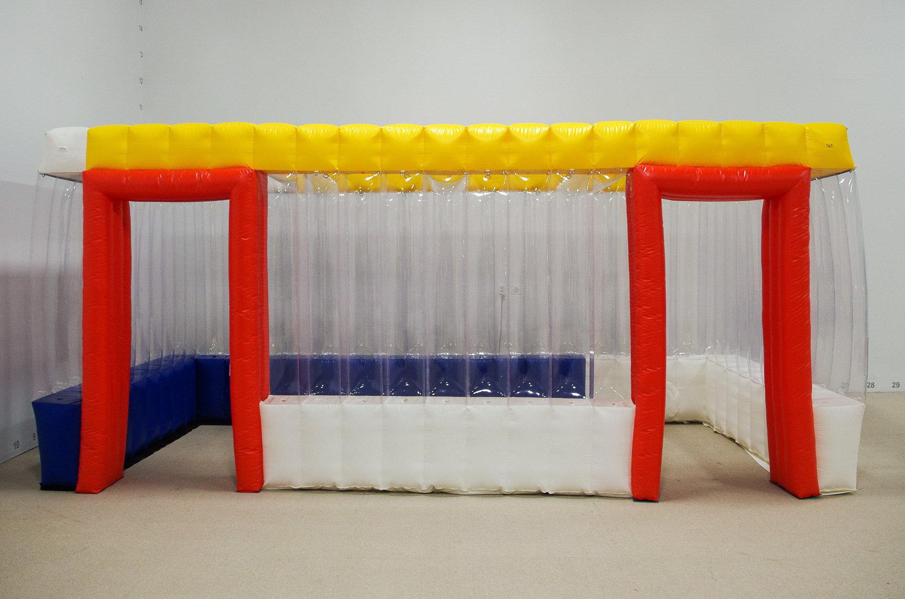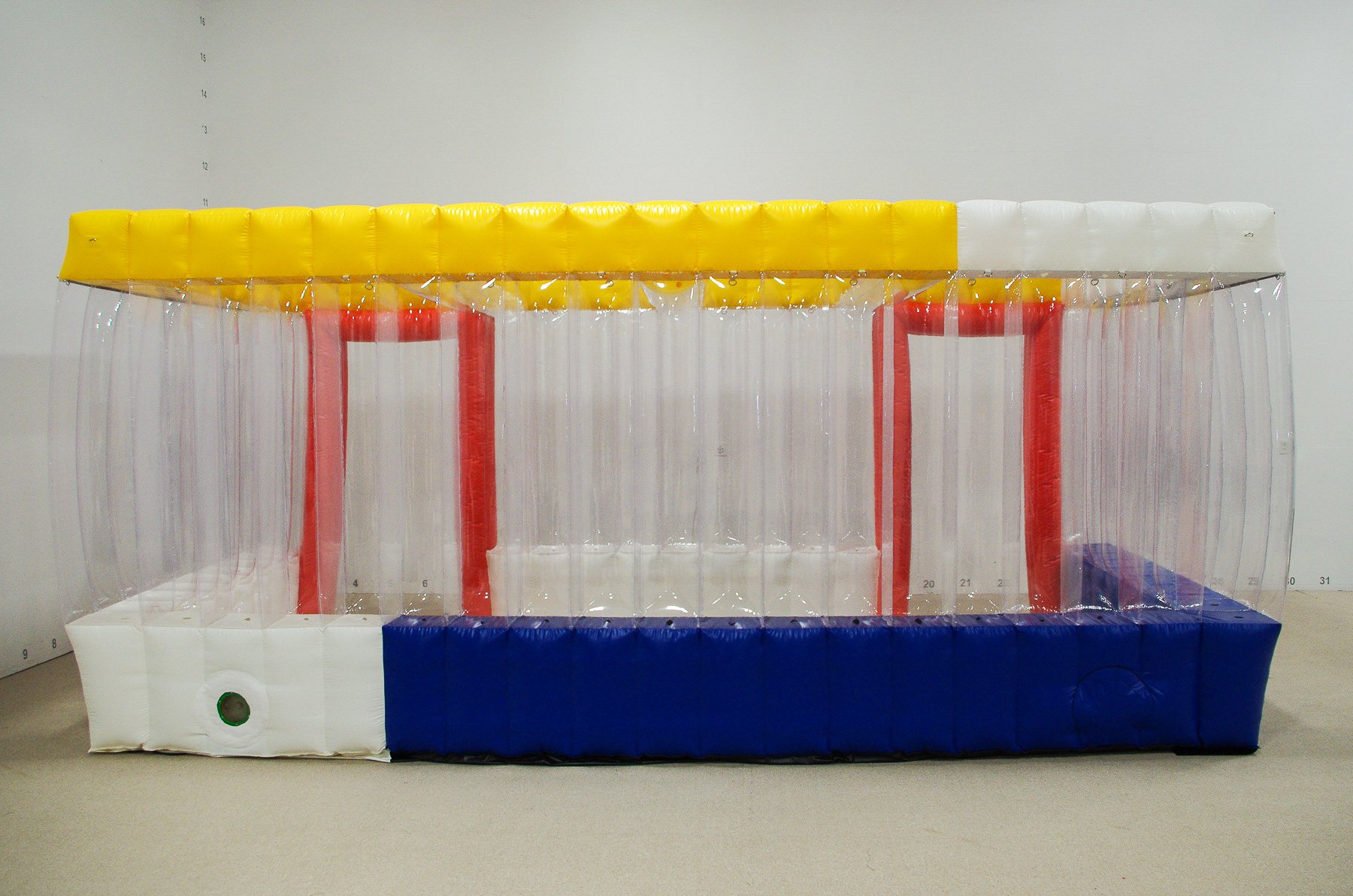 This inflatable bus shelter provides a unique space for bus riders to wait in, while exploring the role of transit in everyday life in Emily Stover’s 'In Service' bus stop pilot project.