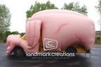 This inflatable pig cover placed over a bus was used to represent "the 1 percent." Protesters displayed the inflatable Pig-Bus outside of the presidential debates to amplify the message of wall street flushing money directly down the drain or right into their pockets.