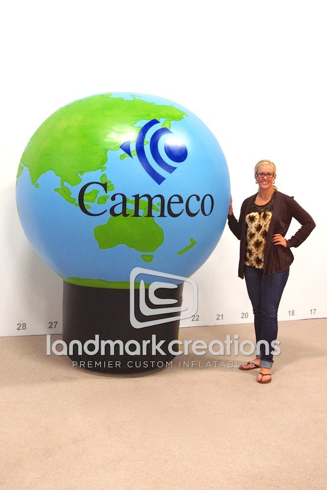 This 8-foot inflatable globe replica with Cameco Corporation's logo was used to complete their parade float display for the Canada Day parades in Port Hope and Cobourg.