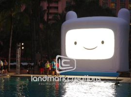 Cartoon Network's Adventure Time show turned their main character, Finn, into a massive jaw-dropping display for Comic-Con International 2012 in San Diego. Placed on top of The New Children's Museum the inflatable character was very hard to miss!