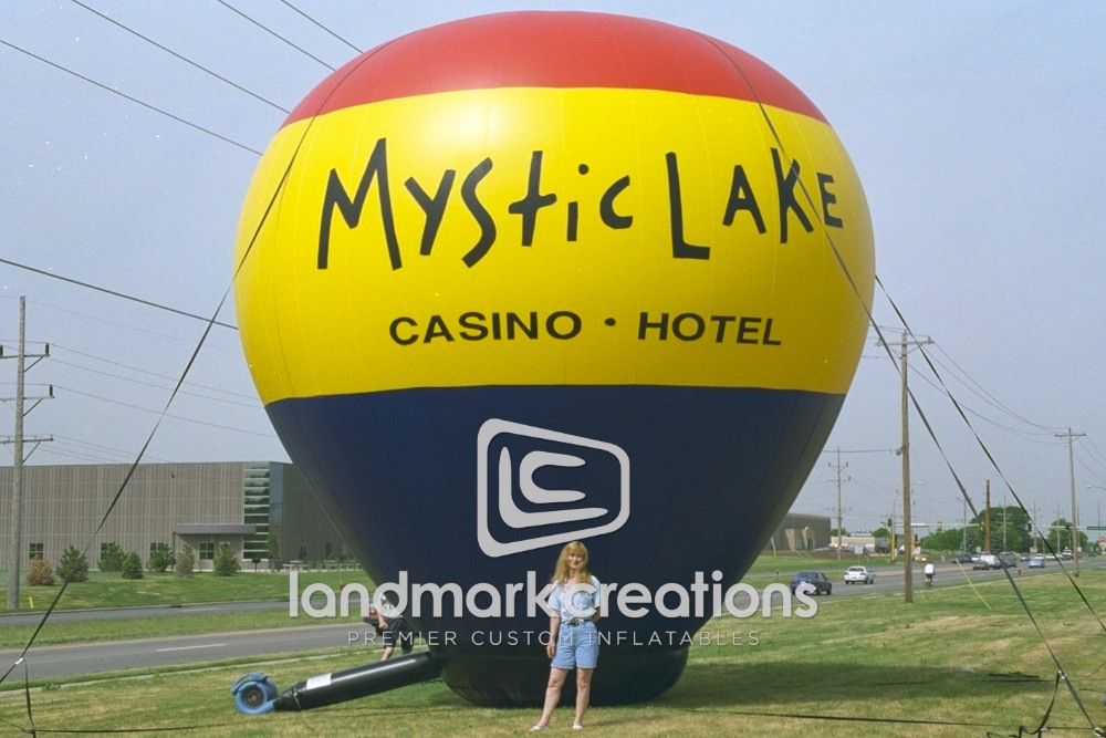 Mystic Lake Casino in Prior Lake, Minnesota, inflated this 25-foot hot air balloon shape with internal lighting to attract attention to their location at all hours of the day.