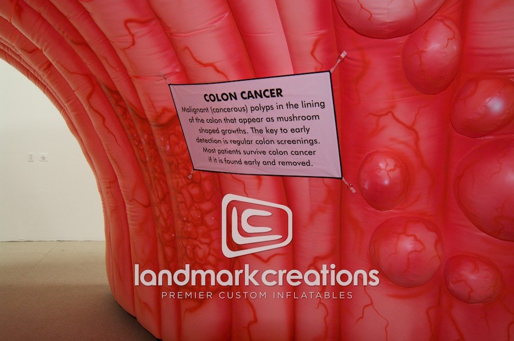 This inflatable colon, created for Colorectal Cancer Coalition for Southeastern Med, is used at home shows, open houses, employee health fairs and public events. Attendees walk through the colon to educate themselves about colorectal cancer.
