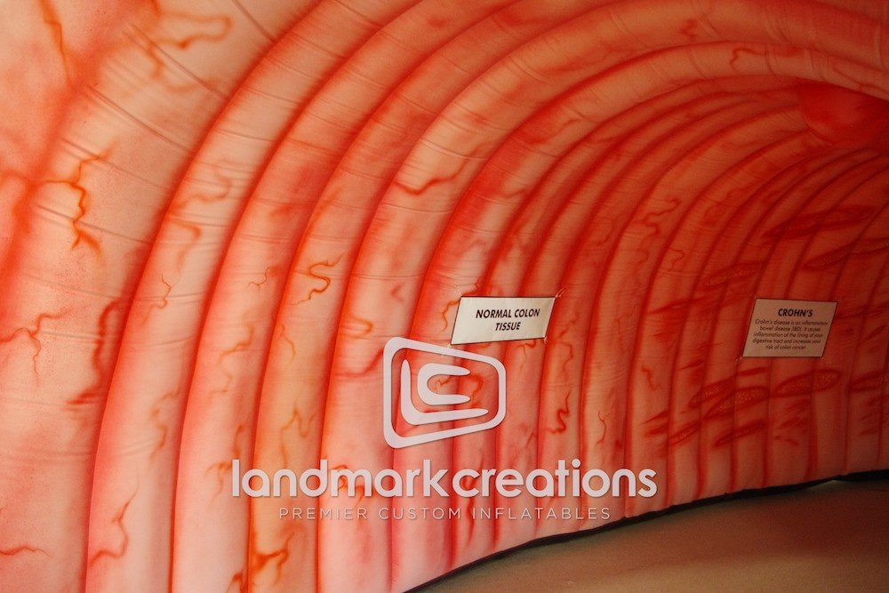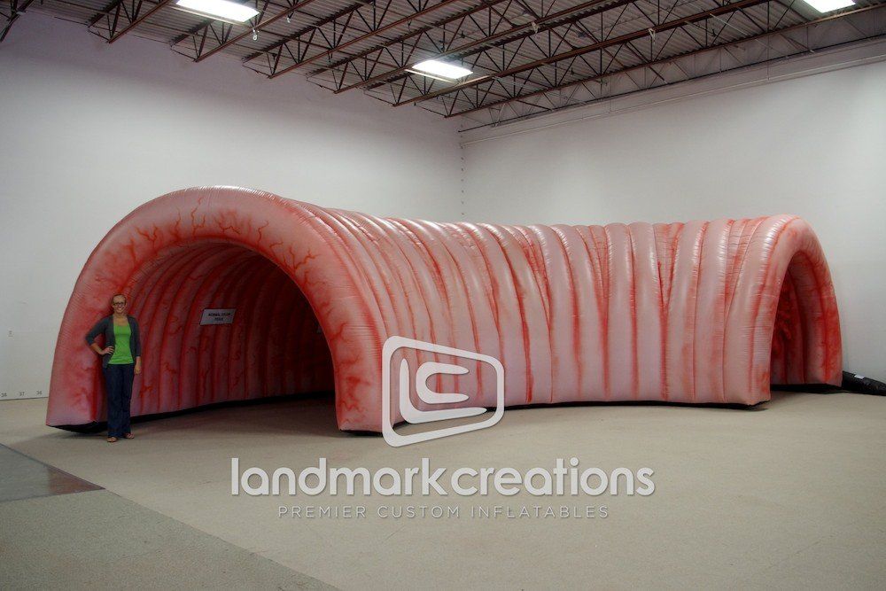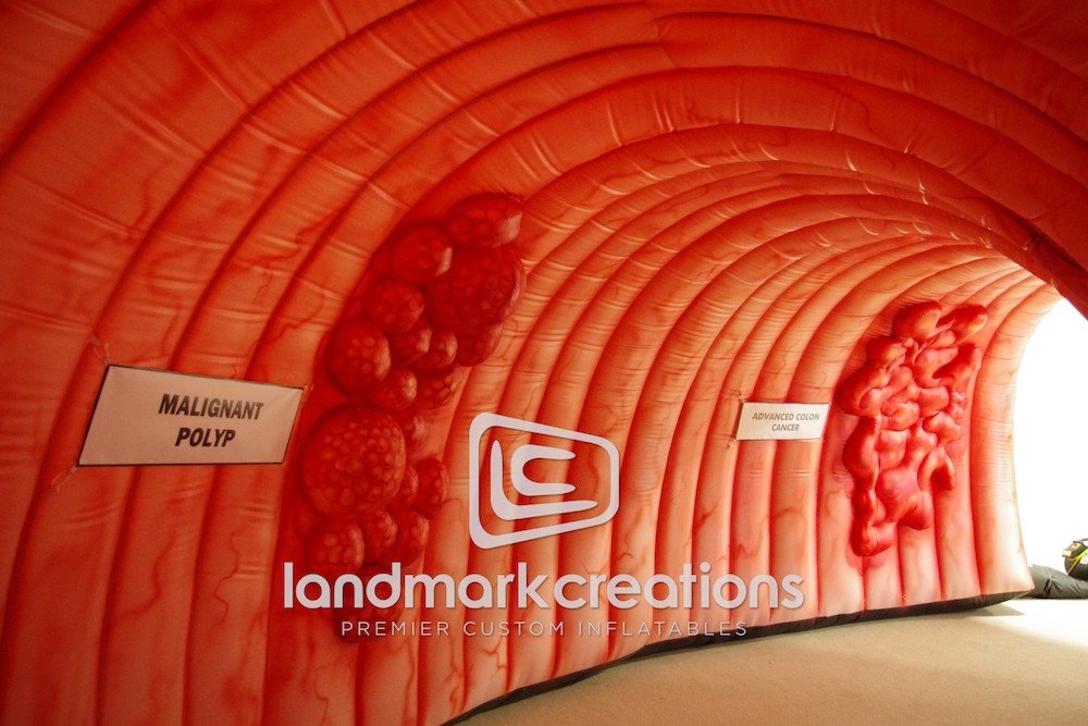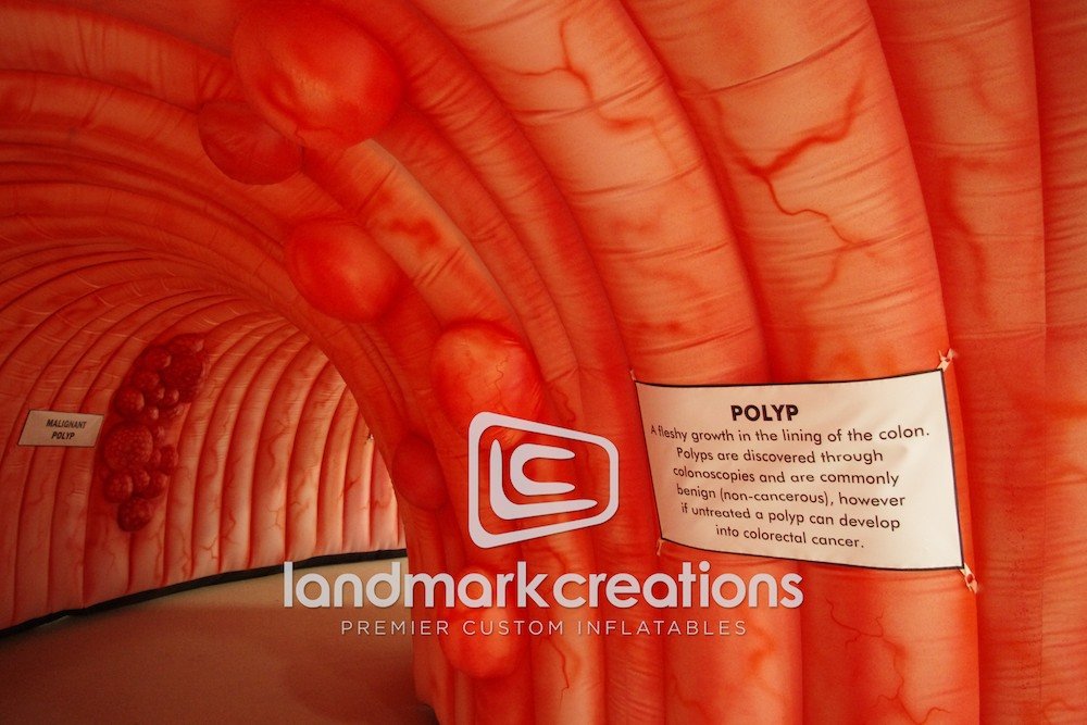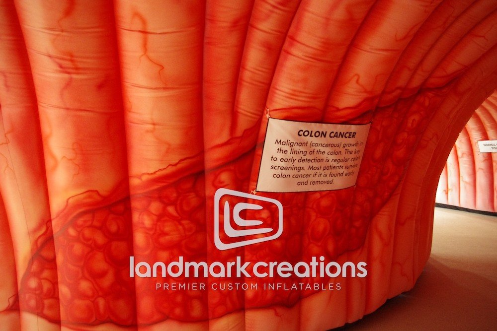 This inflatable colon designed for the Center for Rural Health sparks conversations and increases colon cancer awareness at community events and exhibits. With descriptive banners placed next to disease replicas, people can easily view colon health issues.