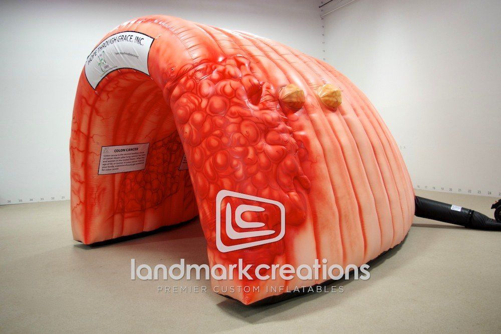 Non-profit organization, Hope Through Grace educates people about colon cancer and urges them to seek screenings with the use of this inflatable colon. The Adventure Colon, as the organization likes to call it, will be introduced to thousands at the Living Strong Health Fair in Houston.