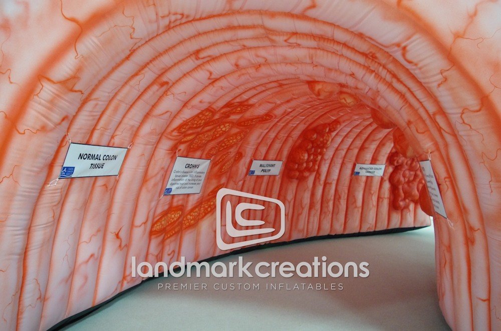 This inflatable colon for the Colon Cancer Alliance spurs discussion and increases colon cancer awareness at community events. With descriptive banners placed next to 3D disease replicas inside the colon, people can easily understand issues related to colon health.