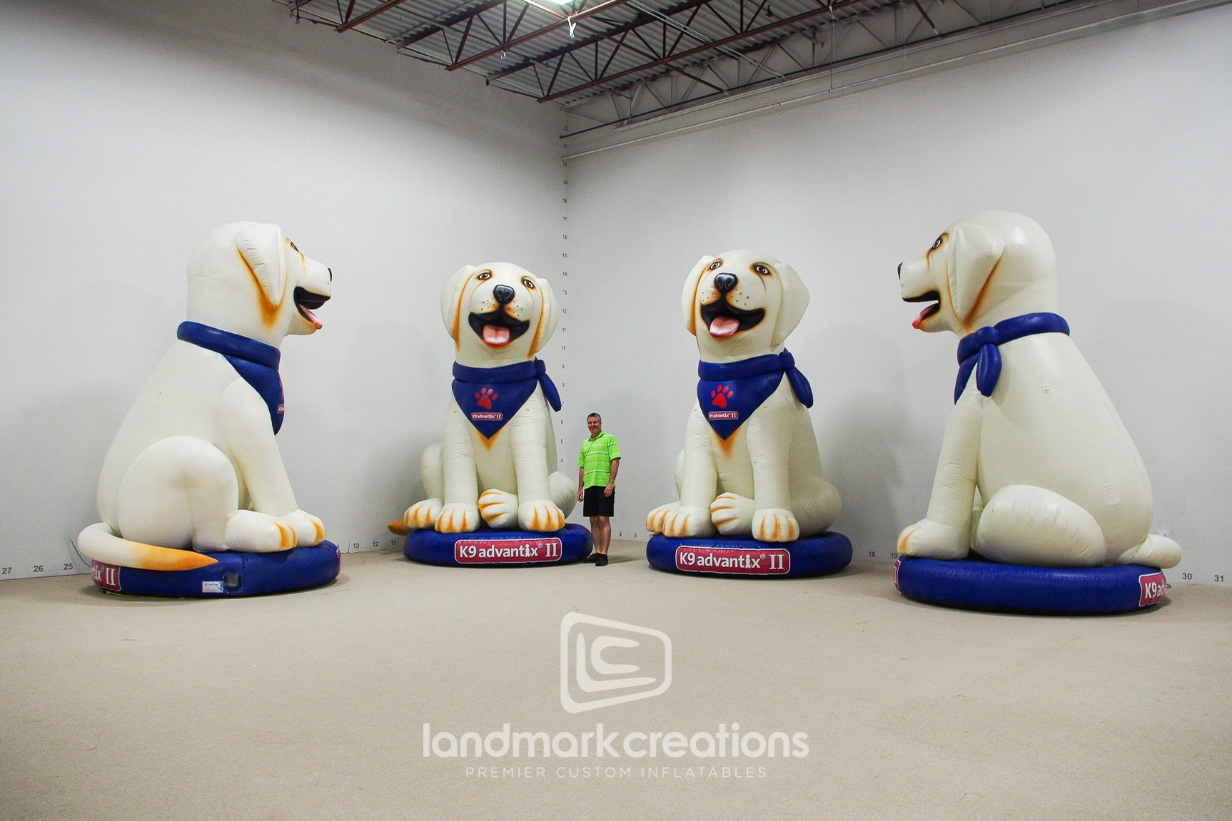 Looking for a creative way to attract attention from pet lovers? Bayer Healthcare Animal Health uses these inflatable puppies to steer pet parents toward K9 Advantix II when visiting the pet clinic or pet retail locations.