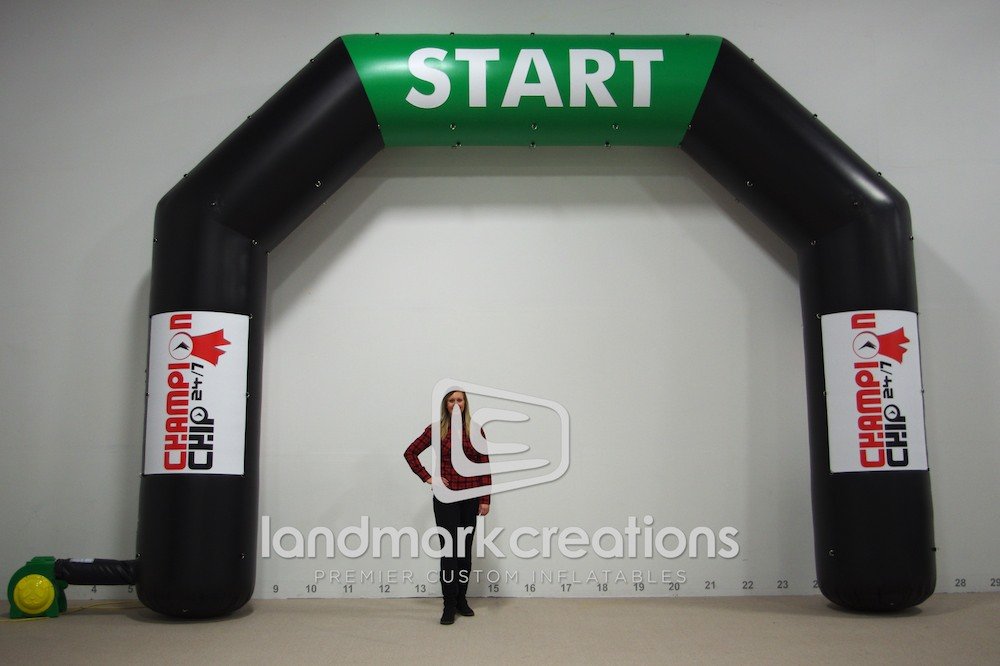 Professional race timing company, ChampionChip 247, provides this inflatable start arch at a variety of racing events. Inflatable hexiarches are easy to manage and provide space for interchangeable sponsorship banners.