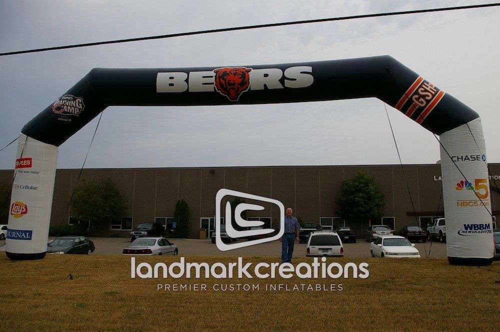 Giant arches, like this one for the Chicago Bears, are great for creating buzz at events. Professional athletic teams use inflatable arches for tailgating events and to showcase sponsors!