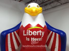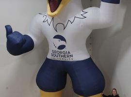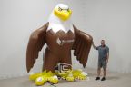 Inflatable mascots, like this 12-foot eagle, can be easily managed by small teams at school events.