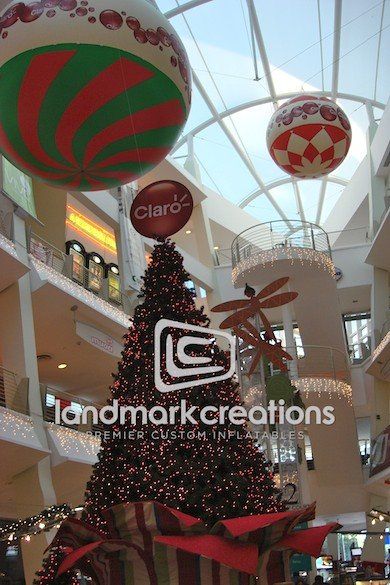 These whimsical, custom-designed Christmas ornaments added holiday spirit when suspended from the ceiling of this large retail location.