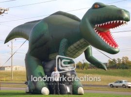 Manufactured homes retailer, Clayton Homes, uses this massive inflatable dinosaur mascot to get attention & increase foot traffic at their home centers in Waco, Texas.