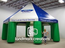Modular manufactured homes retailer, Clayton Homes of Savannah, inflates this custom tent at community events, high school athletics and at retail locations to attract attention and promote their business! Easy to inflate, manage and deflate the inflatable tent is sure to spark interest.