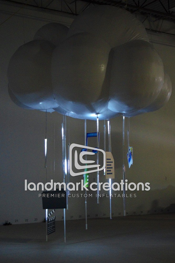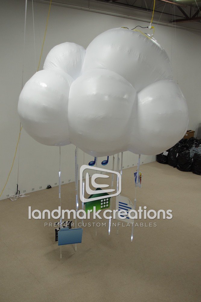High-performance hardware and software solutions company Code 42 Software suspends a giant inflatable cloud with LED motion lights and graphics that sway like a mobile in their trade show booth to attract attention and promote their cloud-based software solutions.