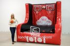 Coca-Cola increases crowd participation and adds excitement to sporting events with this Coke-branded inflatable dual basketball toss.
