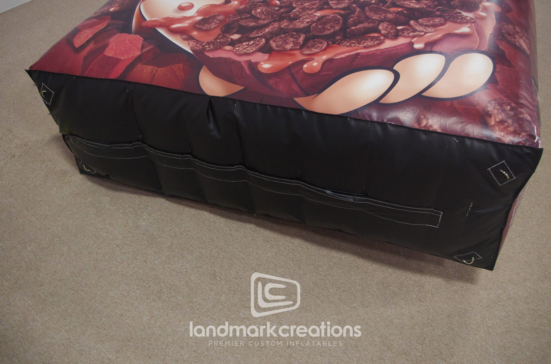 Landmark Creations partnered with Svedvik Collective to craft a custom inflatable replica of the iconic Cocoa Pebbles cereal box. This eye-catching installation served as an engaging photo station in Minneapolis, effectively attracting attention and enhancing brand visibility for food product marketers.