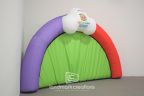 The 'Cocomelon Partytime' inflatable arch, crafted for Sparks, serves as a vibrant backdrop for stage productions and tours. Its colorful design enhances performances, creating an engaging atmosphere for audiences.