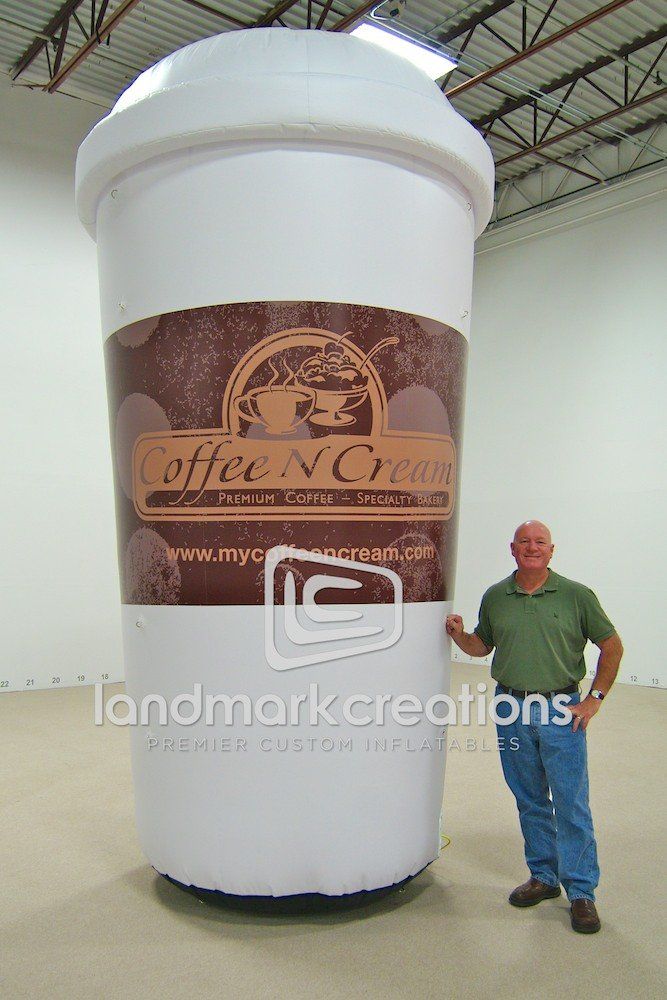 Wake up and smell the coffee! This 12-foot inflatable coffee cup for Coffee N Cream makes a strong visual impression. Custom inflatables are a smart and easy way to advertise your business and web site address outdoors.
