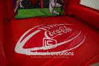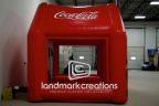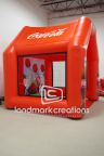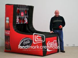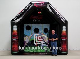 Custom inflatable sports cages, like this football toss for Coca-Cola, increase attention and engage crowds at outdoor events.