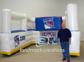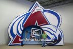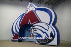 This custom-designed Colorado Avalanche hockey slap shot is inflated at the Pepsi Center in Denver to increase fan participation and enthusiasm.