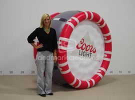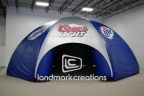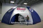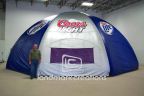Custom-designed inflatable tents offer both shade and advertising for beverage companies during outdoor events and concerts.