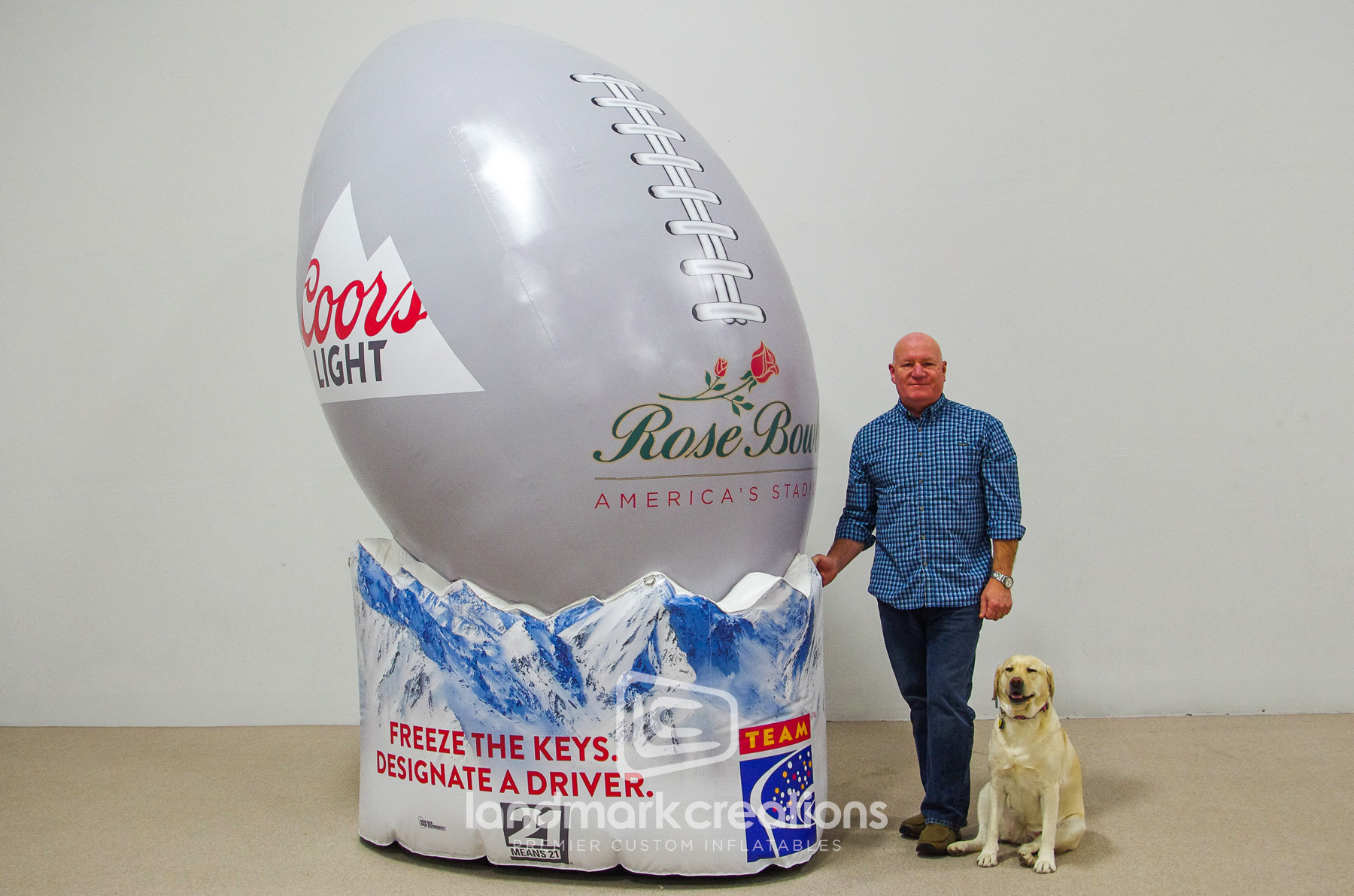 Created for TEAM Coalition at the Rose Bowl 2016 in Marina Del Rey, CA, this custom inflatable football featured a fan pledge to not drink and drive, reinforcing an important message at a high-profile event. Standing as a centerpiece, it engaged attendees while showcasing the power of branded inflatables to make a lasting impression.