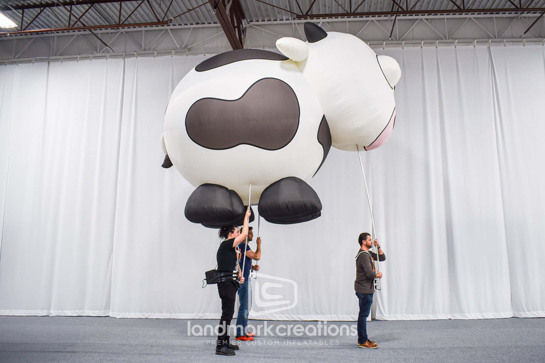 Charlotte Center City Partners partnered with Landmark Creations to design a 10-foot-tall custom inflatable cow pole puppet. This whimsical, cartoon-inspired inflatable was crafted to add a touch of charm and community spirit to their holiday parade. Perfect for creating photo opportunities and boosting engagement, this inflatable character seamlessly blends creativity with function, enhancing the visual appeal of public events. Discover how our custom mascots and characters can transform your events into memorable experiences.
