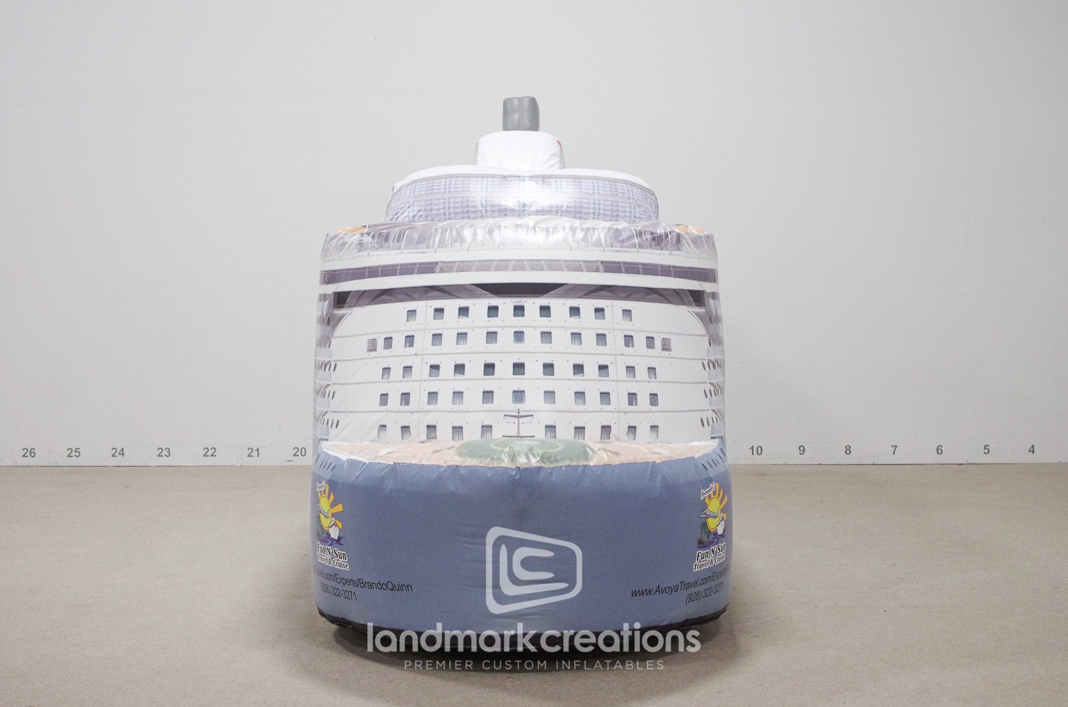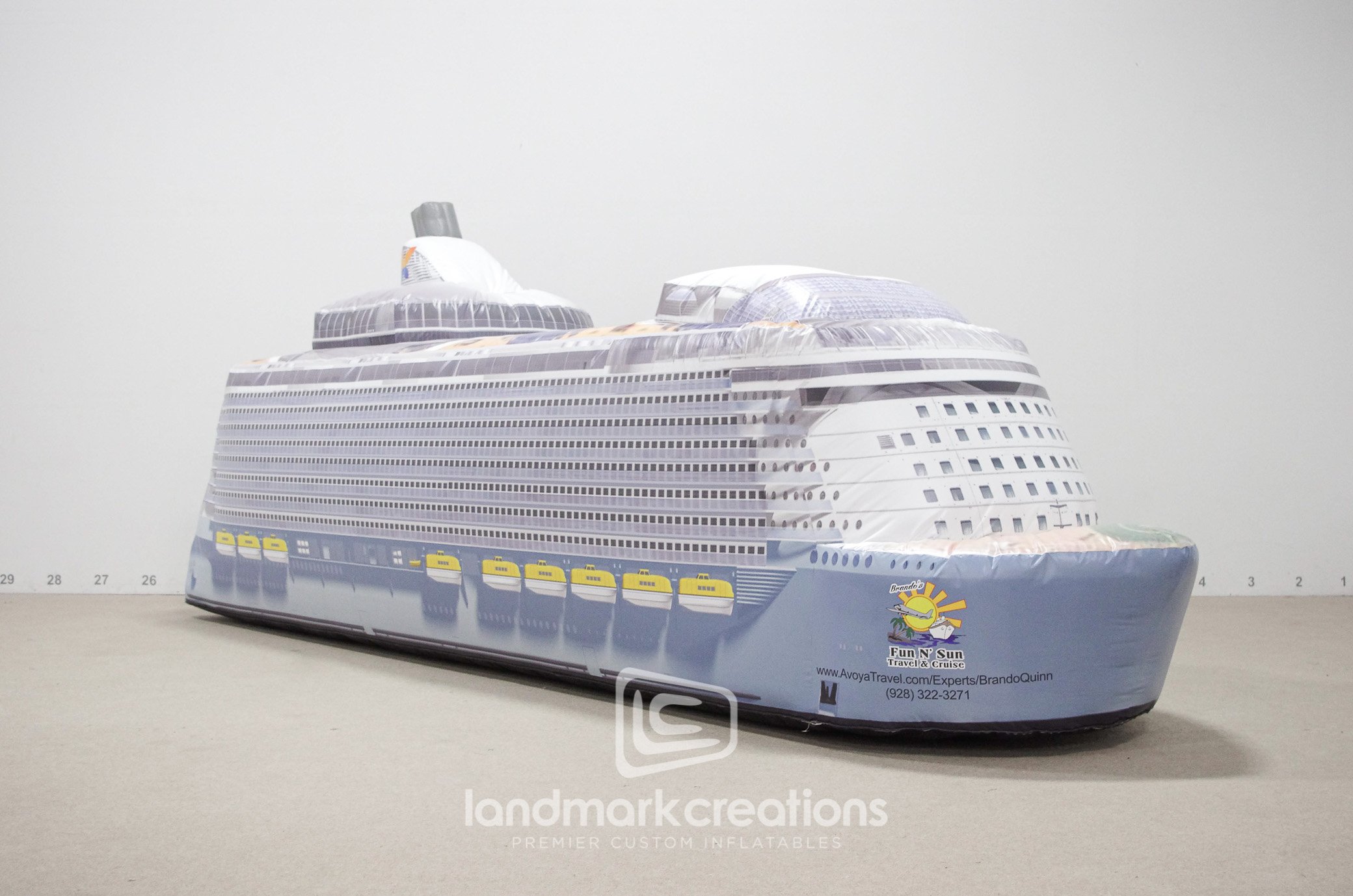 Landmark Creations worked closely with Fun N’ Sun to promote its travel services within a California community. The custom designed inflatable cruise ship is a show stopper at every parade it is featured in.