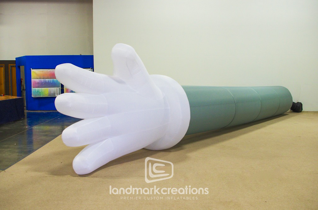The DADA Life Arms inflatable is a unique creation crafted for Visual Infinity, showcasing Landmark Creations' expertise in custom inflatable art. This striking piece exemplifies the potential of inflatable sculptures to enhance visual impact, perfect for brand activations, events, or artistic installations. With its bold design and towering presence, this inflatable demonstrates the limitless creativity available to clients seeking custom, large-scale inflatables.