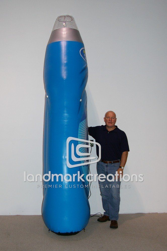 Dawn uses this 10-foot inflatable replica of their Dawn Plus with Power Scrubbers dish soap to advertise outdoors at retail locations, including grocery stores and supermarkets.