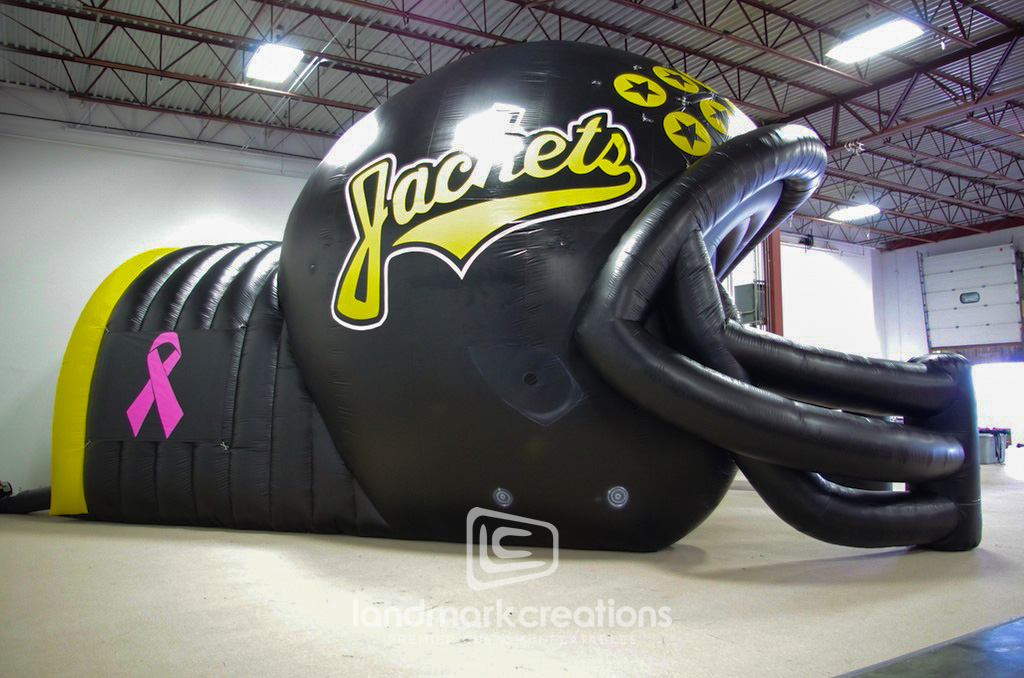 The Denison Jackets Helmet inflatable is a custom mascot feature that amplifies school spirit. Perfect for sports events, pep rallies, and community gatherings, this attention-grabbing inflatable brings excitement and pride to any event.
