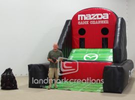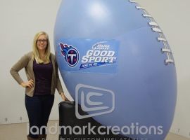 Are you looking for a creative way to engage fans at the sporting events you sponsor? Custom inflatable displays like this ring-shaped football toss for Van Atkins Jewelers make strong visuals that connect during the event and are likely to be photographed and shared on social media channels.