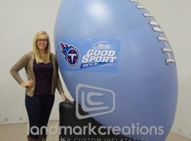 Are you looking for a creative way to engage fans at the sporting events you sponsor? Custom inflatable displays like this ring-shaped football toss for Van Atkins Jewelers make strong visuals that connect during the event and are likely to be photographed and shared on social media channels.
