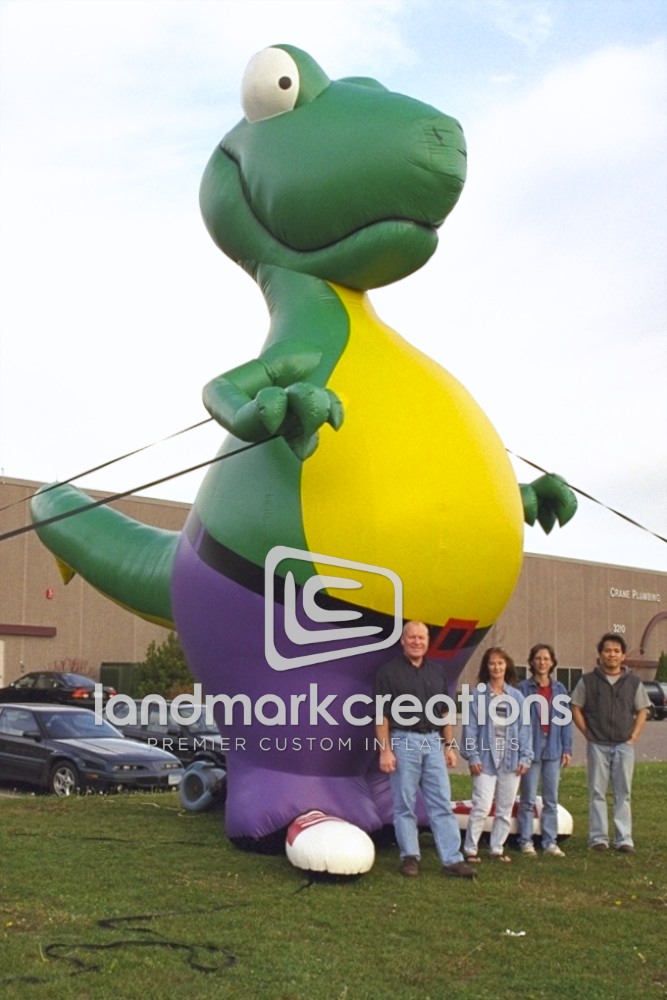 This inflatable dinosaur knows how to rock purple pants! Attracting crowds, driving traffic and increasing sales are only a few advantages to inflating giant mascots at retail locations.