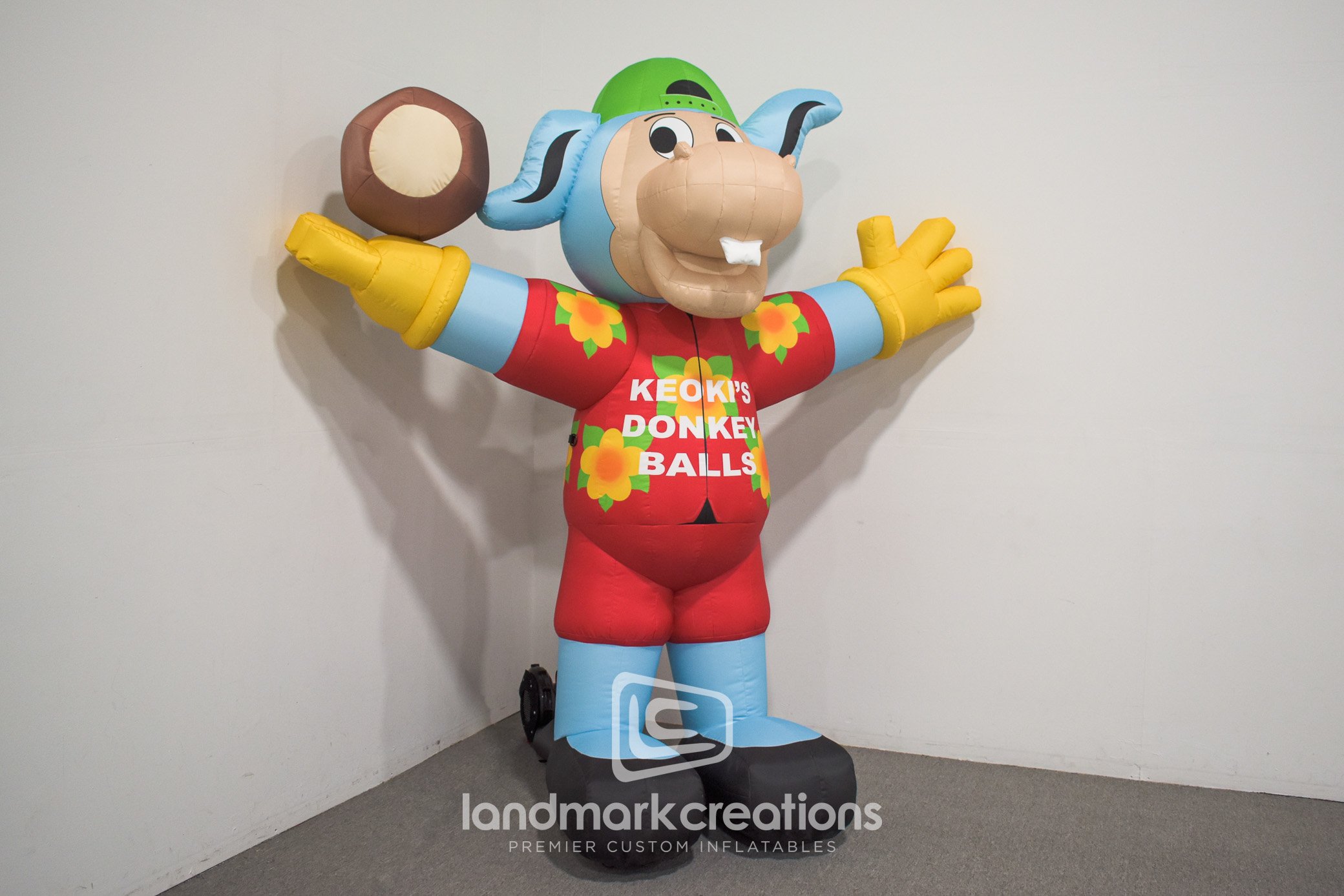 Keoki's Donkeyballs Chocolates, a coffeehouse in Hawaii, creates a fun and memorable experience for customers by using a festive inflatable donkey mascot to engage crowds at their restaurant and draw attention to their brand; who wouldn't want to get a photo opportunity next to this friendly, sunflower t-shirt wearing character?