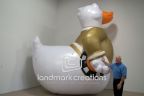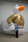 Inflatable stage props add unique, visual impact and fun to any event! This giant inflatable duck, named “Duck Sauce”, is easy to set up, transport, and store for multiple use at various marketing and performance events.
