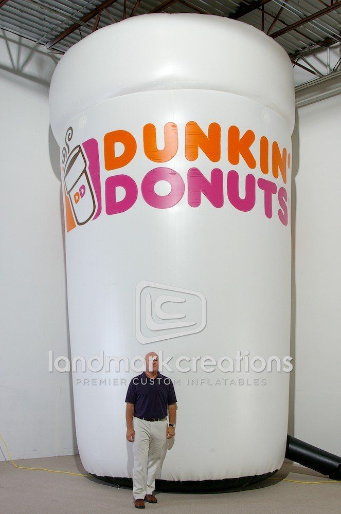 Dunkin' Donuts restaurants use inflatable product replicas of their classic coffee cup to attract attention during grand opening events and special coffee and baked goods promotions.